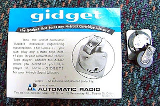 Check the handy and oh-so-modern innovations that include separate cartridge/modules for AM and FM radio, and how timely was the naming of the 'Gidget' 4-track tape adapter?